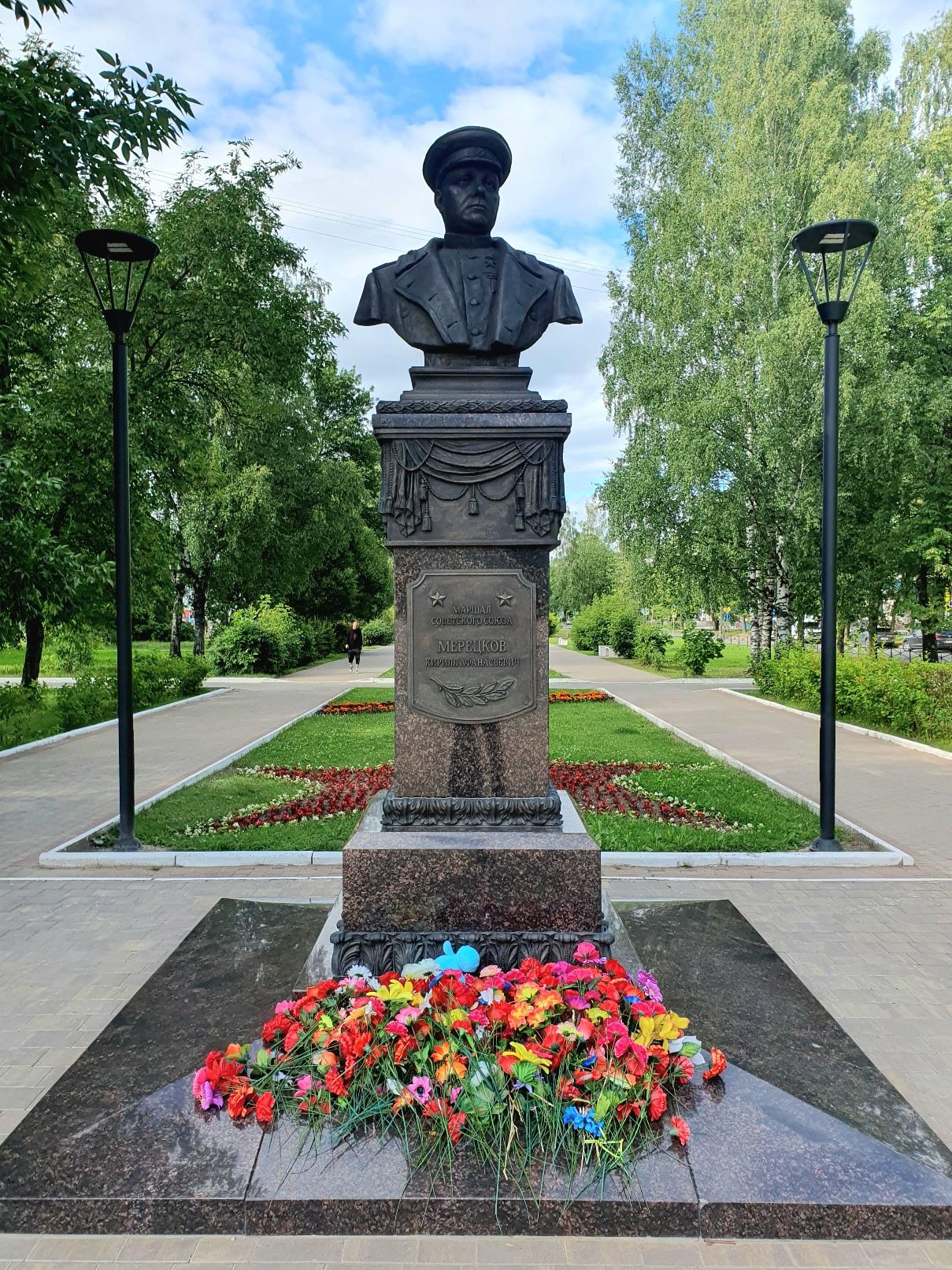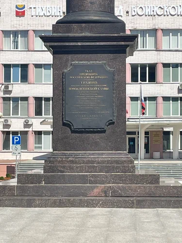 Площадь Маршала Мерецкова с установленной стелой "Город воинской славы" — это центральный мемориальный комплекс Тихвина, увековечивающий подвиг советских воинов в Тихвинской наступательной операции 1941 года и отмечающий присвоение городу почётного звания "Город воинской славы".